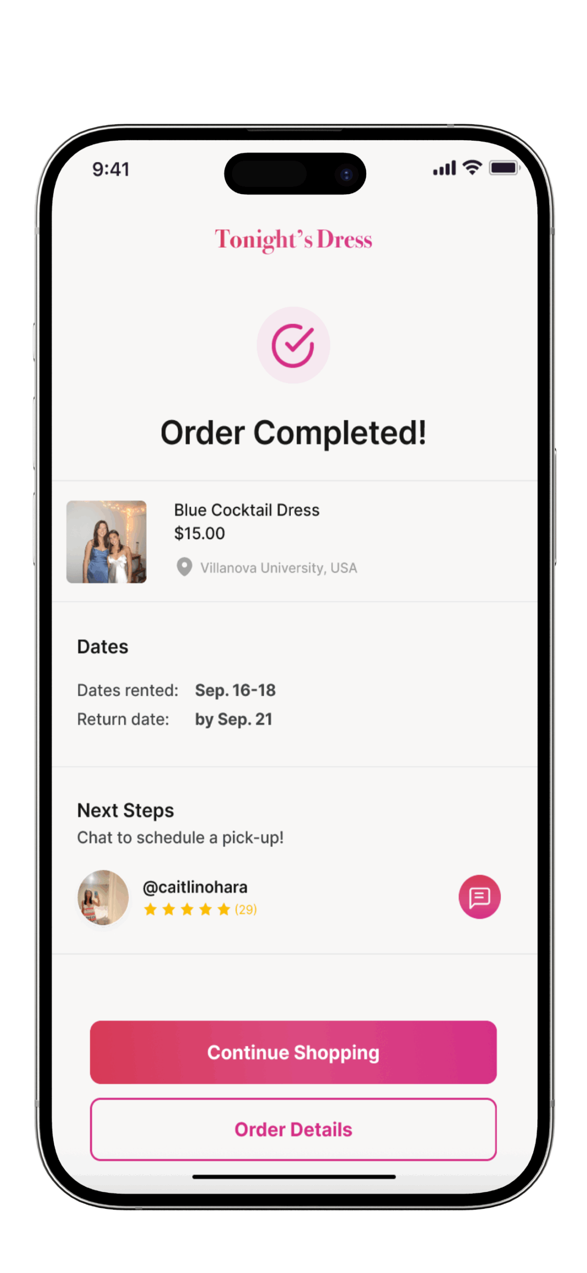 To use the platform, students must sign up with a verified college email, both for security purposes and to ensure they can only browse dresses available on their campus. The app allows users to filter by size, length and color, and includes a chat feature so users can coordinate pickup directly.