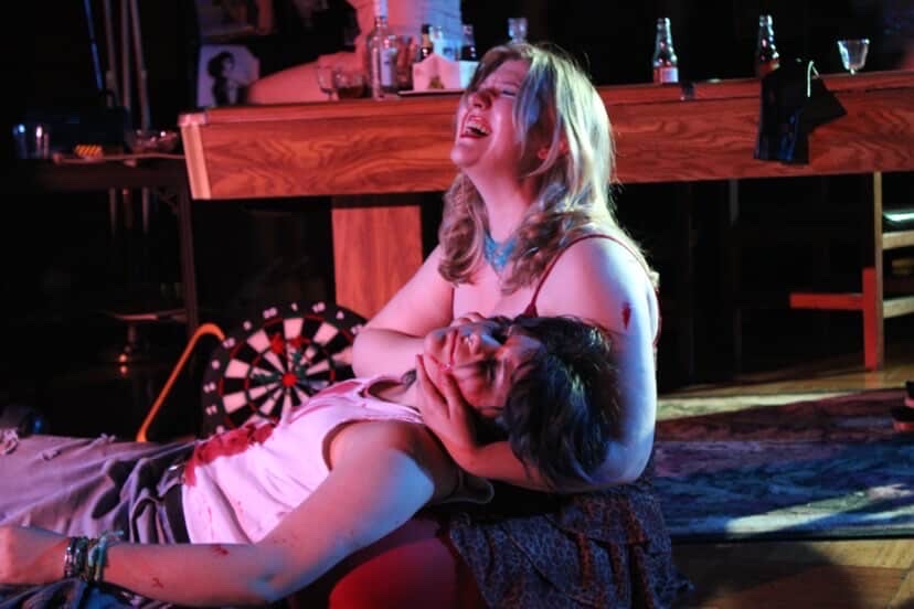 One twist on these two ancient plays is that, in this production, they were both set in a gay bar. The characters are fashioned in a Y2K aesthetic. The set was in conversation with the darkness of the themes of Seven Against Thebes and Antigone. The joy, community, friendship, and love that are found gay bars are also present in the darkness, hatred, fear, and cruelty that is seen in these plays. These beautiful sanctuaries can likewise be transformed into sites of conflict.